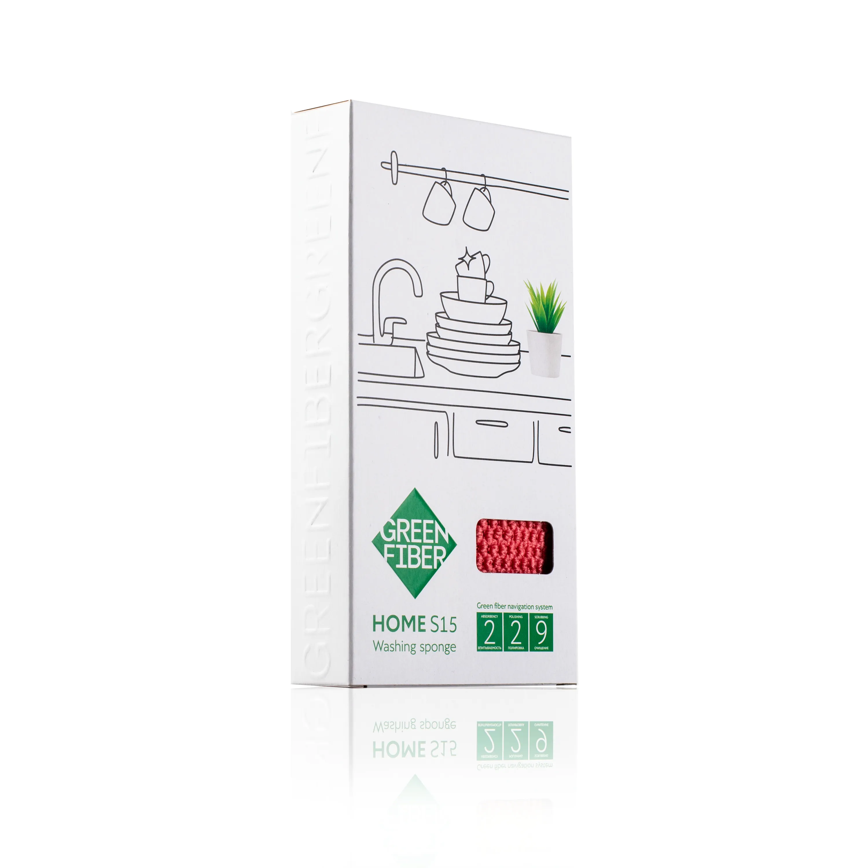 Губка для мытья посуды Green Fiber HOME S15, коралловая