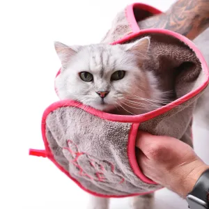 Полотенце из микроволокна для животных интенсивно впитывает влагу и грязь, собирает шерсть, удерживает запахи, а также препятствует размножению вредных бактерий. Мягкая структура ткани не травмирует нежную кожу животного. Удобные кармашки для рук позволяют завернуть и вытереть питомца после купания, а также удалить остатки пищи с мордочки. Полотенце легко сушится благодаря удобной петельке на поверхности. Кроме сушки питомца после мытья, полотенце можно использовать как одеяло или коврик во время путешествий для защиты салона автомобиля от шерсти.